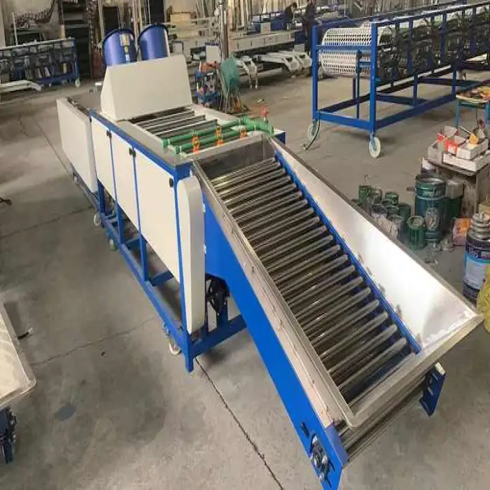 Daily cleaning and sanitizing of wash and convey areas, regular inspection and tensioning of belts, periodic lubrication of bearings, checking blowers and motors, and timely replacement of wearable parts to maintain efficiency and hygiene.