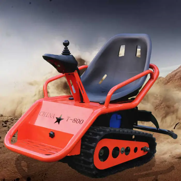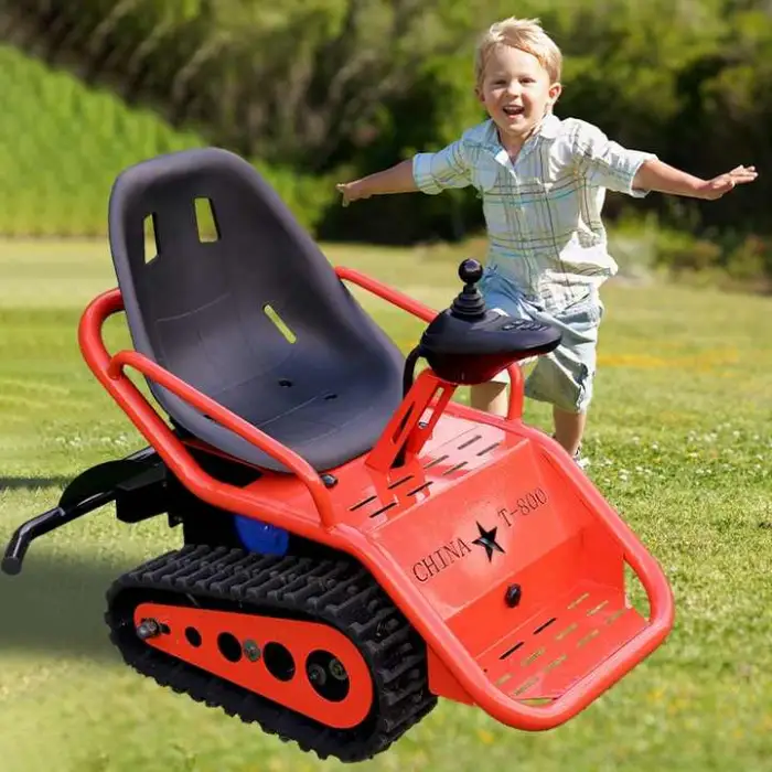 The tracked design is intended for all-terrain use such as grass, dirt, gravel, sand and light snow. Avoid deep water, very steep slopes, or extreme off-road obstacles.
