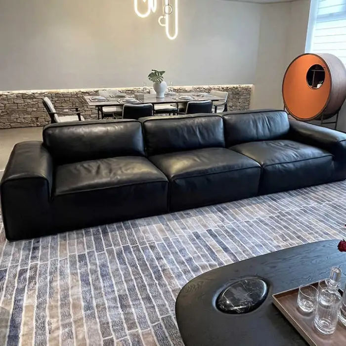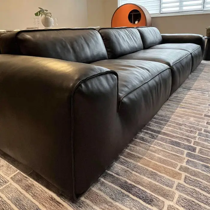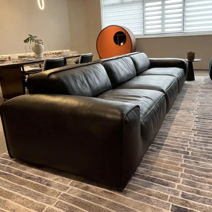 Wipe spills promptly with a soft, dry or slightly damp cloth. Use cleaners and conditioners formulated for genuine leather; avoid harsh chemicals, solvents or abrasive tools. Keep the sofa out of direct sunlight and away from heat sources to prevent fading and drying. For specific care products and schedules, consult the manufacturer or a leather-care professional.