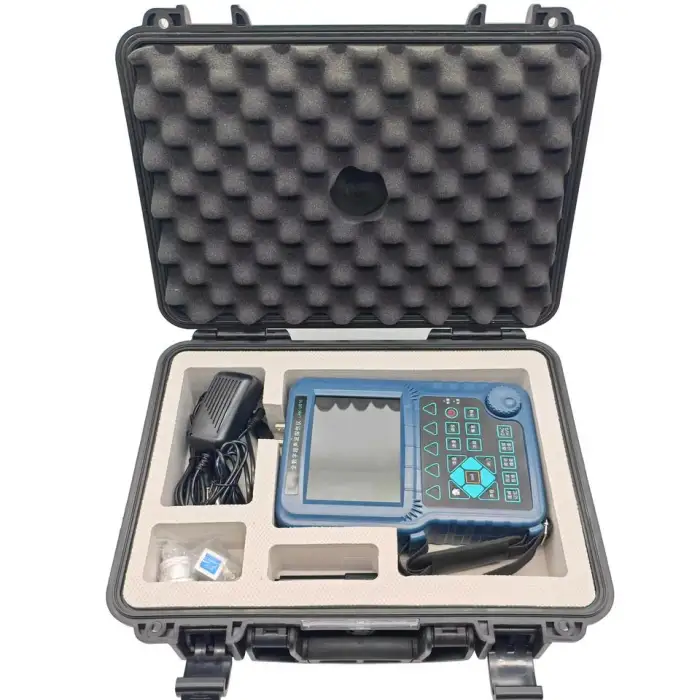 Typical applications include testing welds in manufacturing, inspecting pipelines for flaws, quality control in construction materials, detecting defects in metal structures, and use in aerospace and automotive industries.