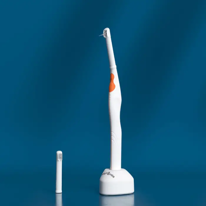 The Easyinsmile device is a dental photodynamic therapy (PDT) light system designed to assist dentists in treating oral infections, enhancing periodontal therapy, and supporting healing after procedures by using light-based photodynamic techniques.