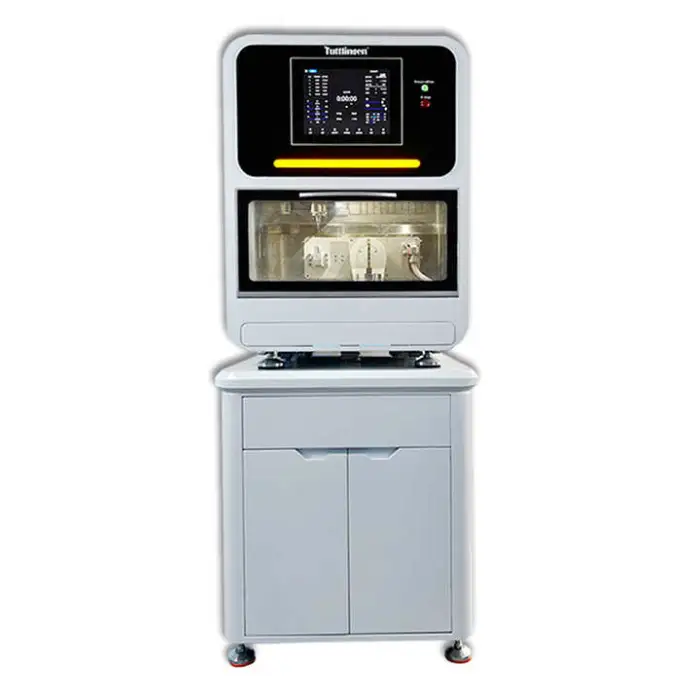 The Oralead CAD CAM milling machine features high precision 5-axis milling capabilities, allowing for intricate and accurate dental work.