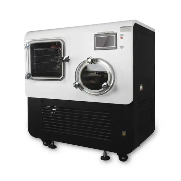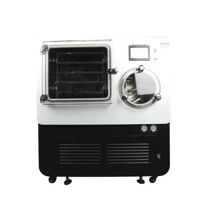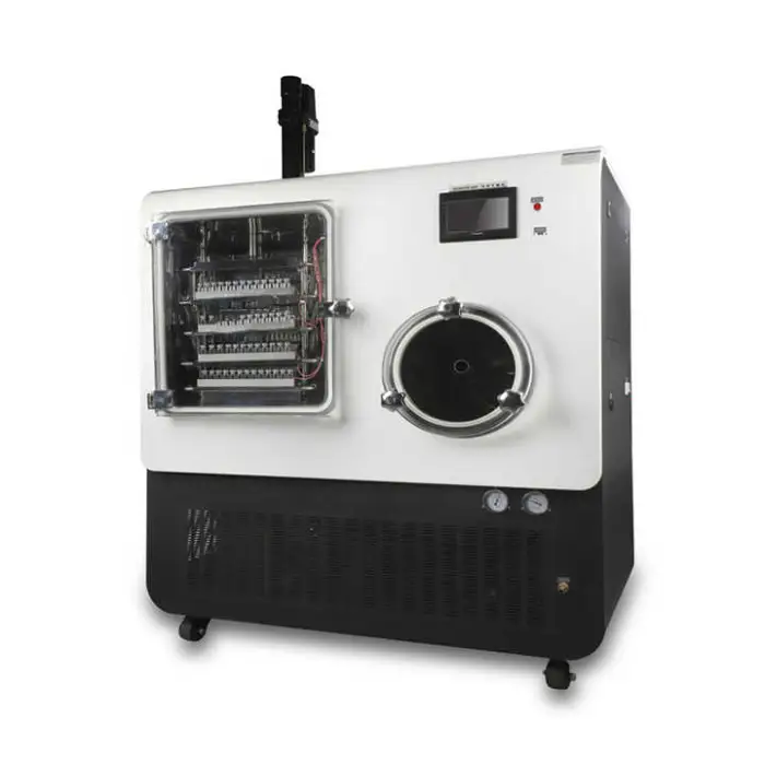 It is a freeze-drying (lyophilization) machine designed for laboratory, food and small-scale pharmaceutical applications. It uses silicone-oil shelf heating, an intelligent control system and a robust vacuum system to dry and preserve samples while maintaining low temperatures and precise control.