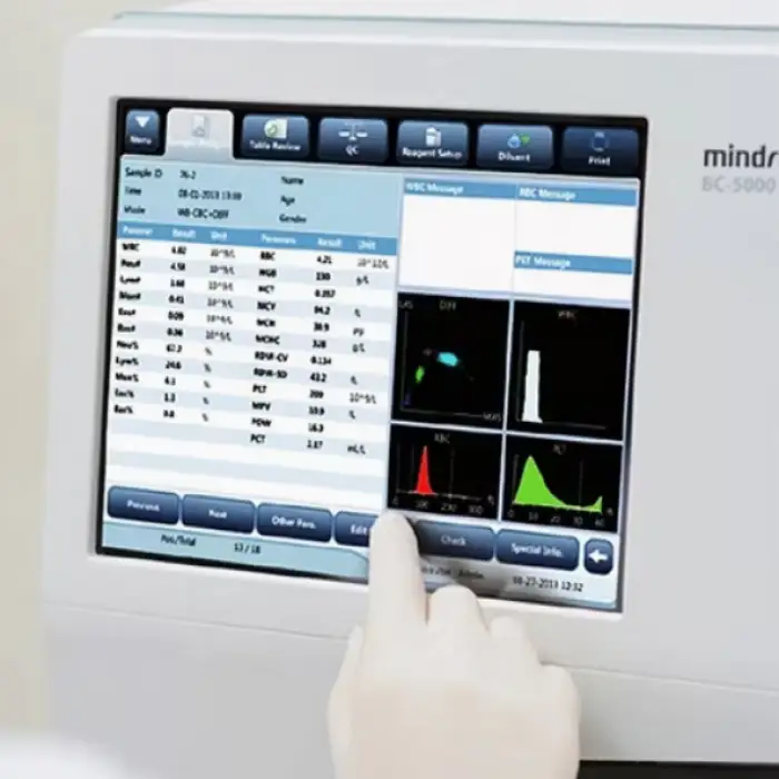 The analyzer supports LAN port communication and HL7 protocol for seamless data exchange.