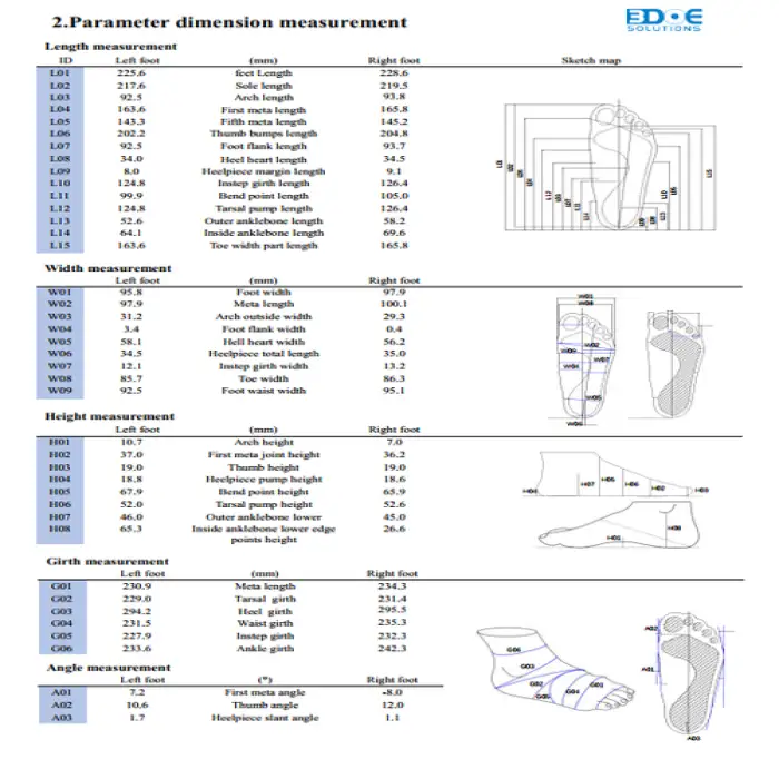 It uses non-contact line laser scanning (single foot scan). The non-contact approach is safe and hygienic for patients and customers.