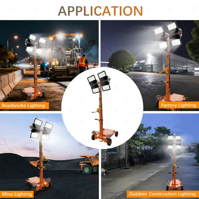 This lighting tower is ideal for construction sites, outdoor events, emergency response situations, roadwork, and search and rescue operations.