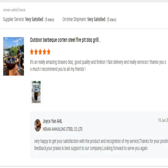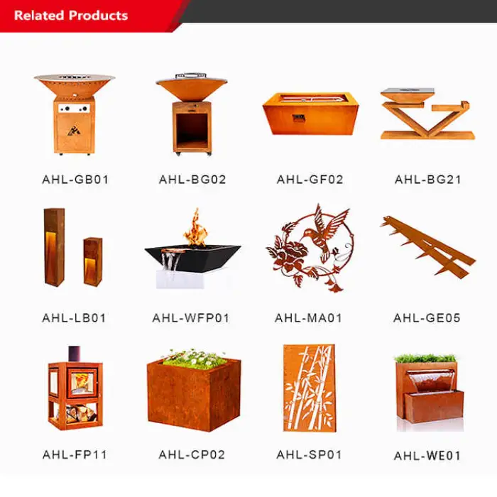 The grill is made from heavy-duty corten steel and carbon steel, ensuring durability and longevity.