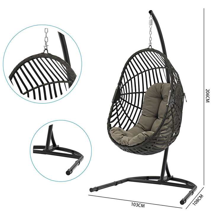 The swing chair measures 103cm in width, 108cm in depth, and 206cm in height.