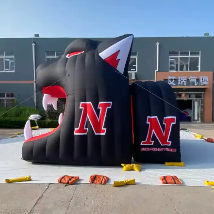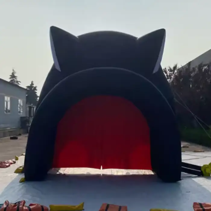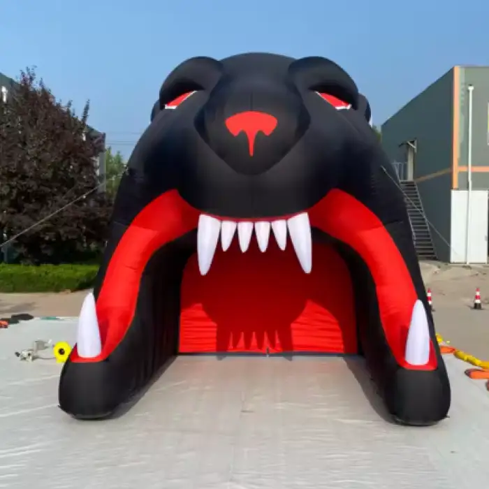 The tunnel is constructed from commercial-grade, waterproof inflatable fabric designed for repeated outdoor use. It is described as durable and suitable for events, though exact material specifications should be confirmed with the supplier.