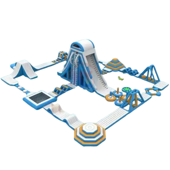 The dimensions of the Outdoor Inflatable Amusement Aqua Park vary depending on the specific model, but they generally have a large footprint suitable for multiple users. For exact measurements, please refer to the product specifications.