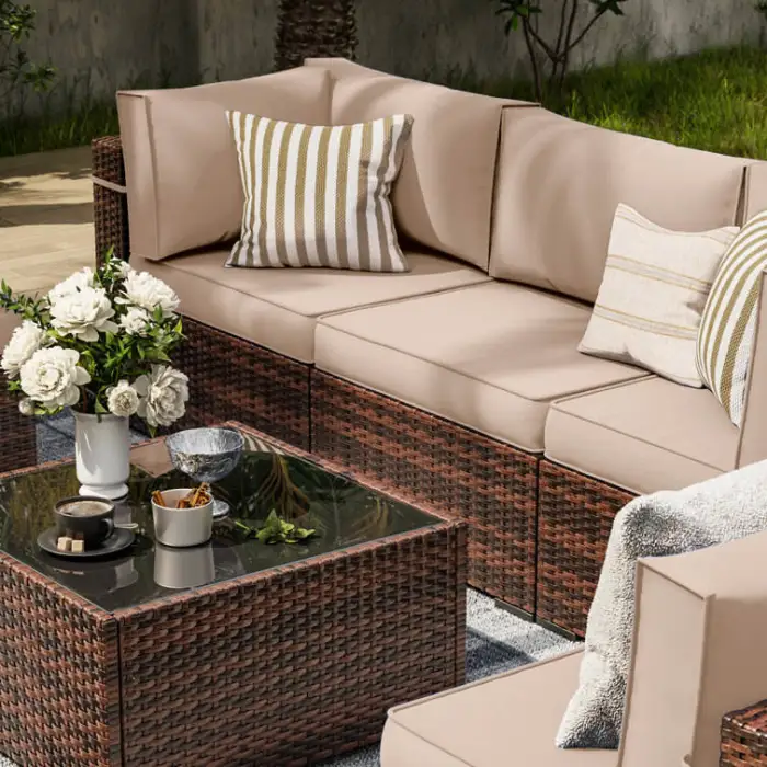 The color of the sofa set is customizable, allowing you to choose a color that suits your outdoor space.