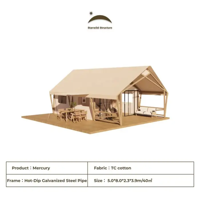 This tent is ideal for luxury camping resorts, glamping sites, family camping trips, and adventure travel.