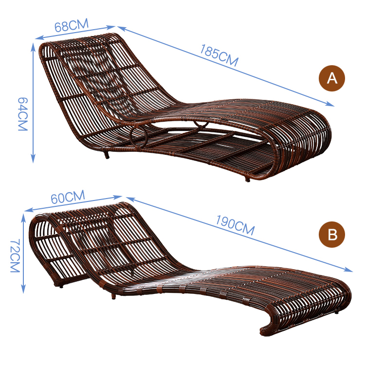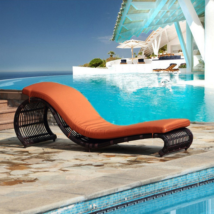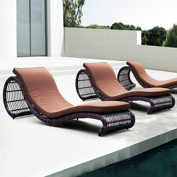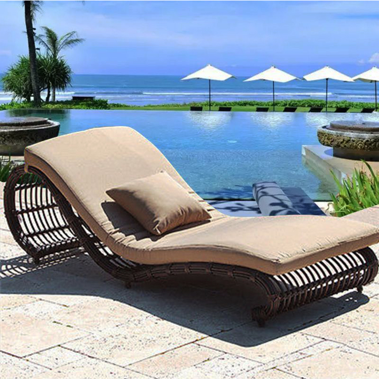 Outdoor Sea Beach Patio Hotel Chaise Lounge Chair Bed Swimming Pool Side Rattan Wicker Chaise Lounge Sun Bed Lounger Chair