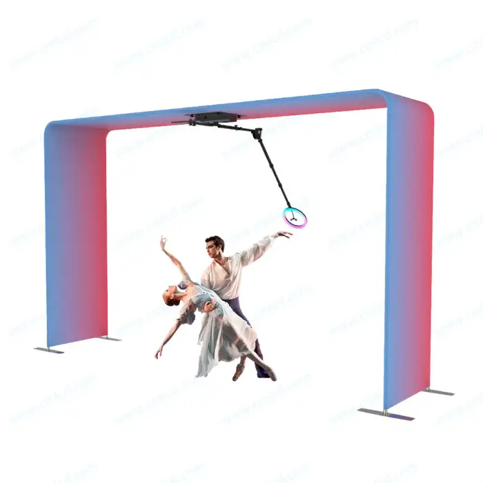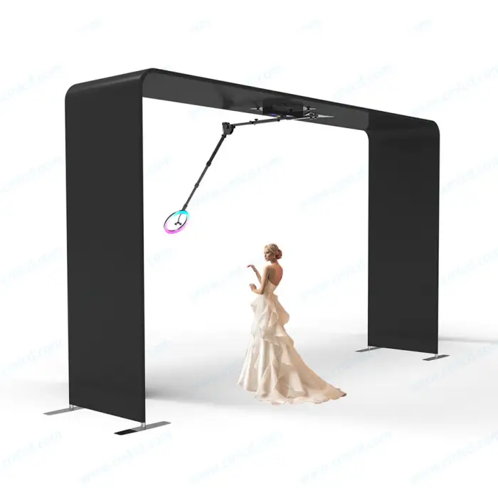 The Overhead Selfie Magic 360 Photo Booth is an innovative photo booth designed to capture 360-degree photos at weddings and events, allowing guests to create fun and memorable experiences.
