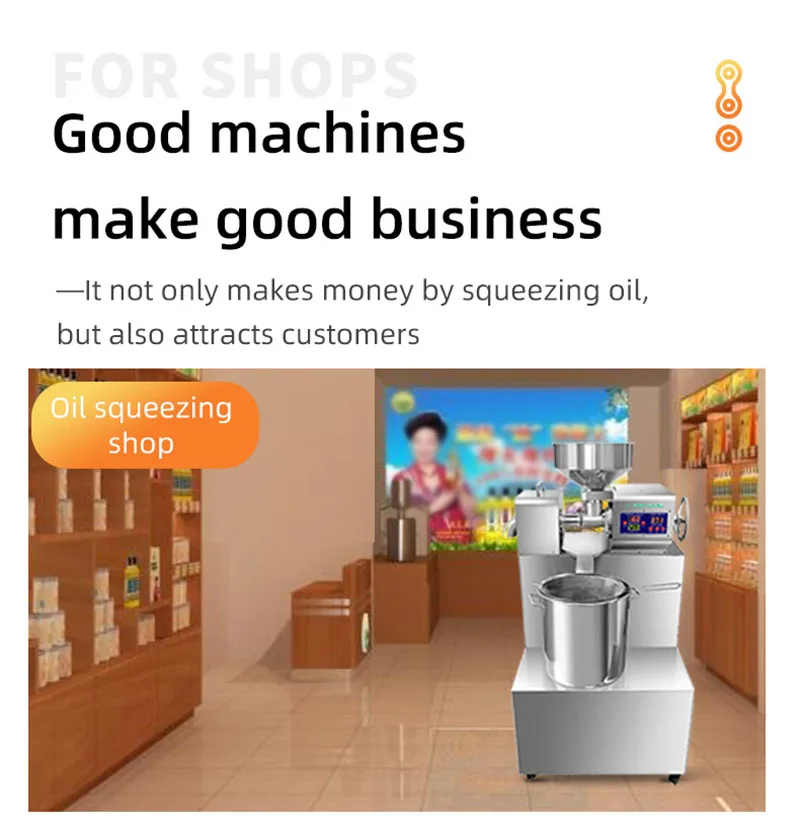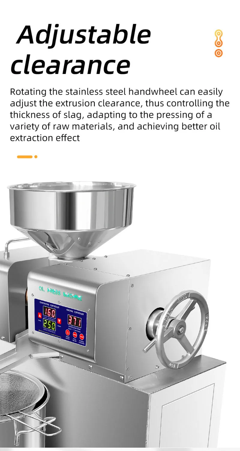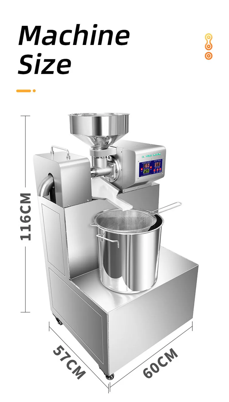 The efficiency can vary based on the type of seed used; however, the machine is engineered to maximize oil yield during the extraction process.