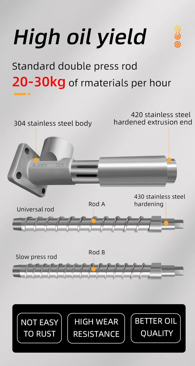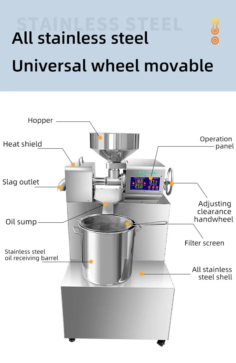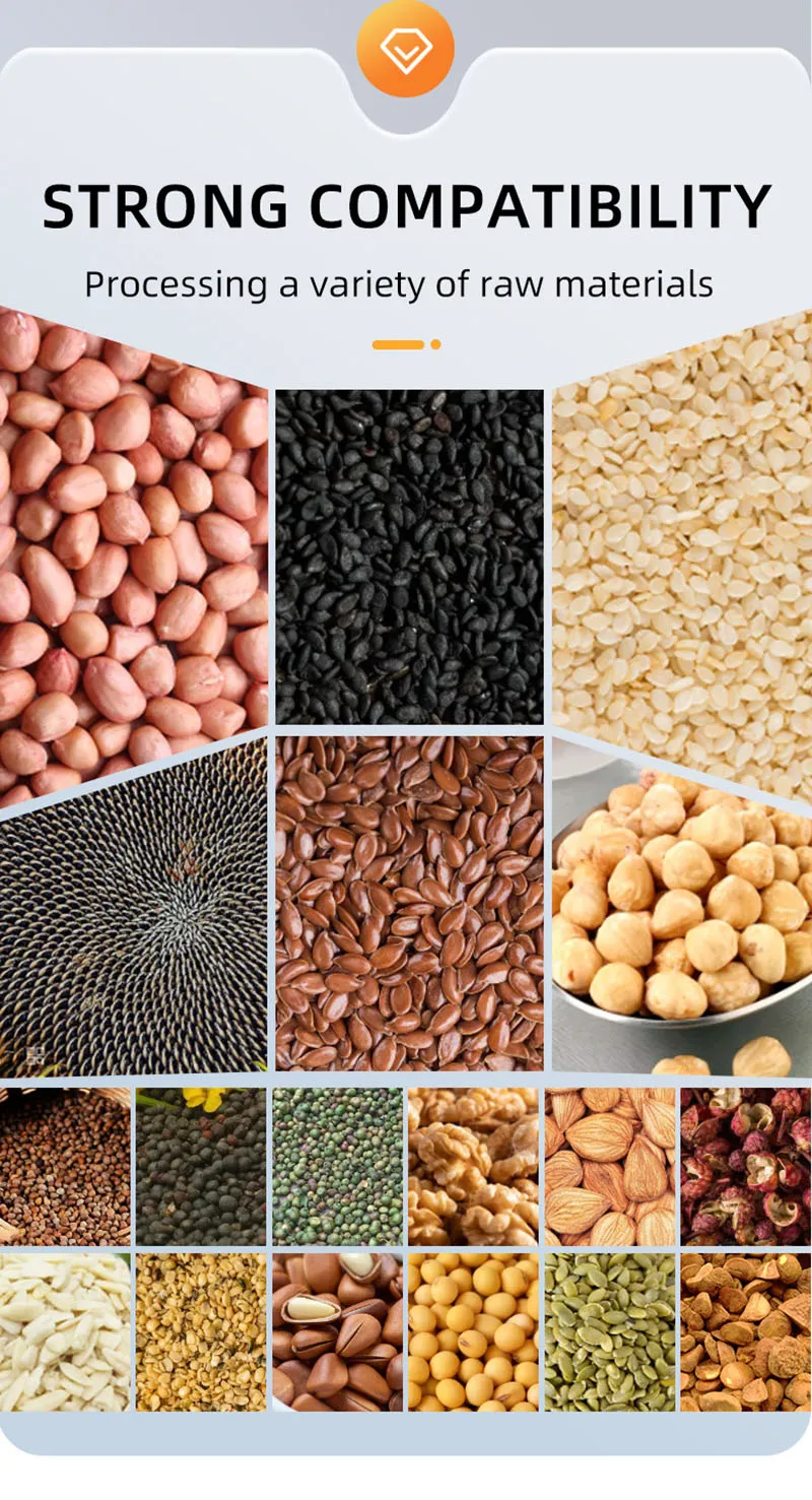 The P30 Medium-Sized Oil Press Machine is suitable for extracting oils from various seeds including sunflower seeds, sesame, coconut, and peanuts.