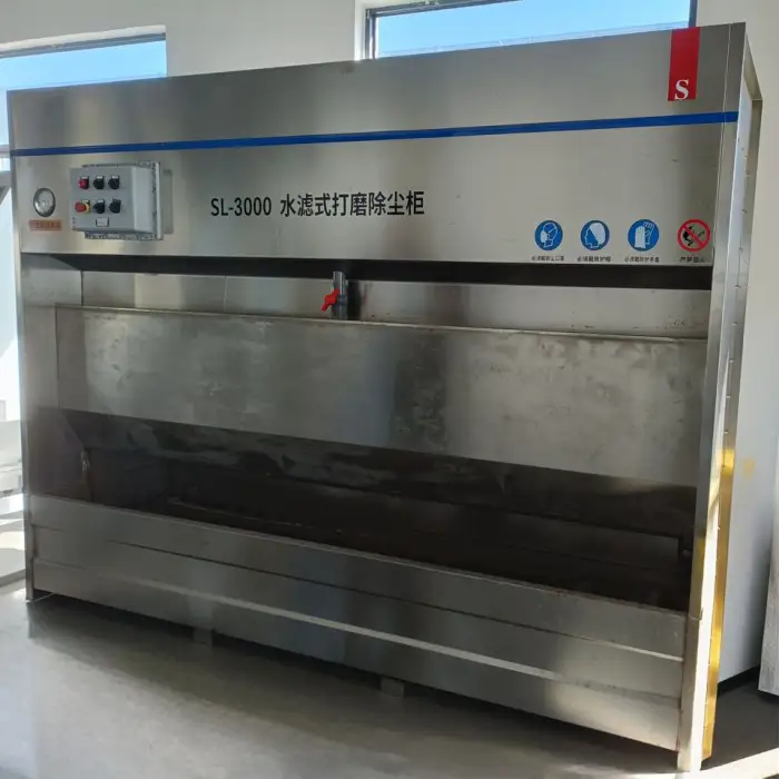 The cabinet is designed to provide a safe working environment by effectively removing harmful paint mist and particles from the air.