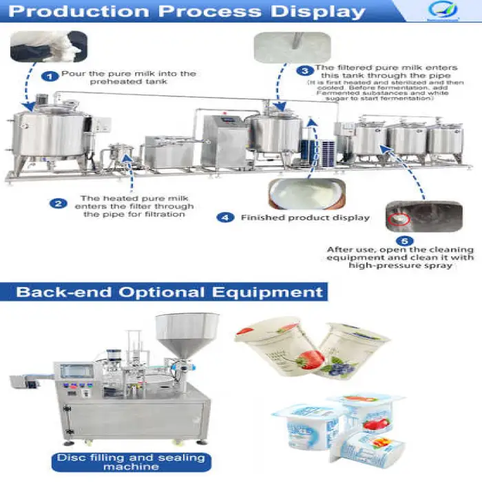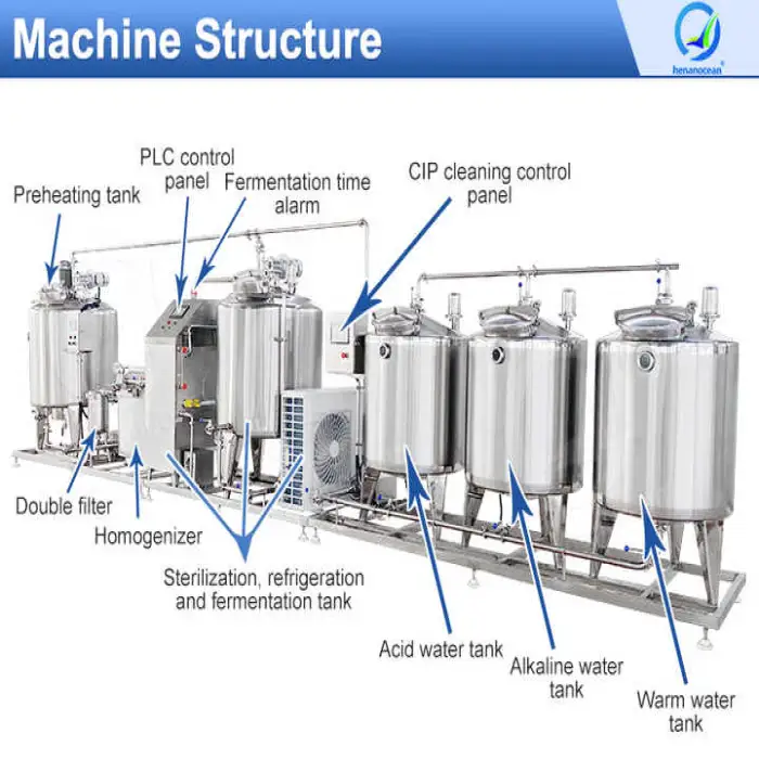 Key features include automatic yogurt making capabilities, efficient PLC control, and durable stainless steel construction.