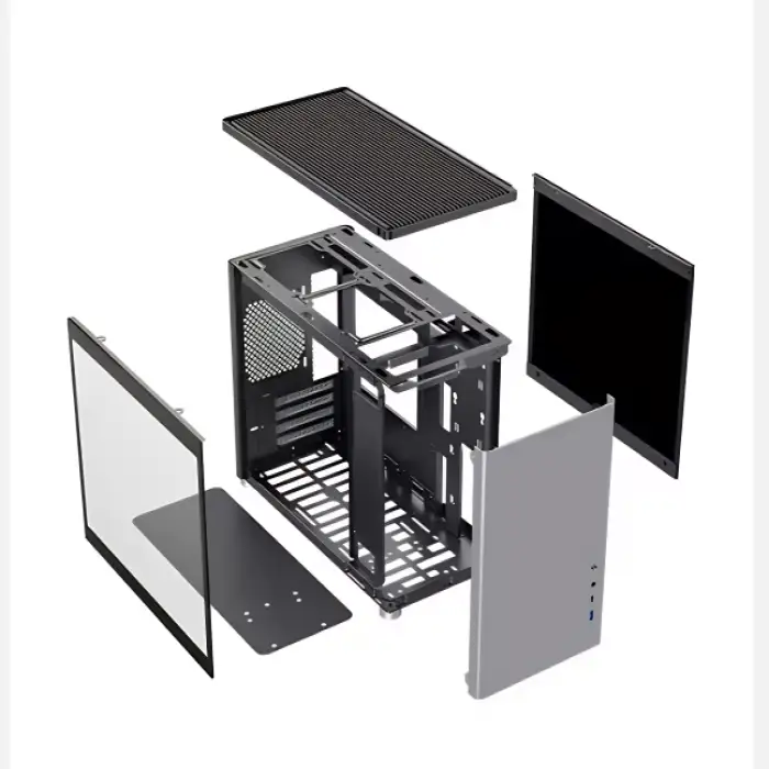 The desktop has a small form factor design, which saves space while providing necessary power and storage.
