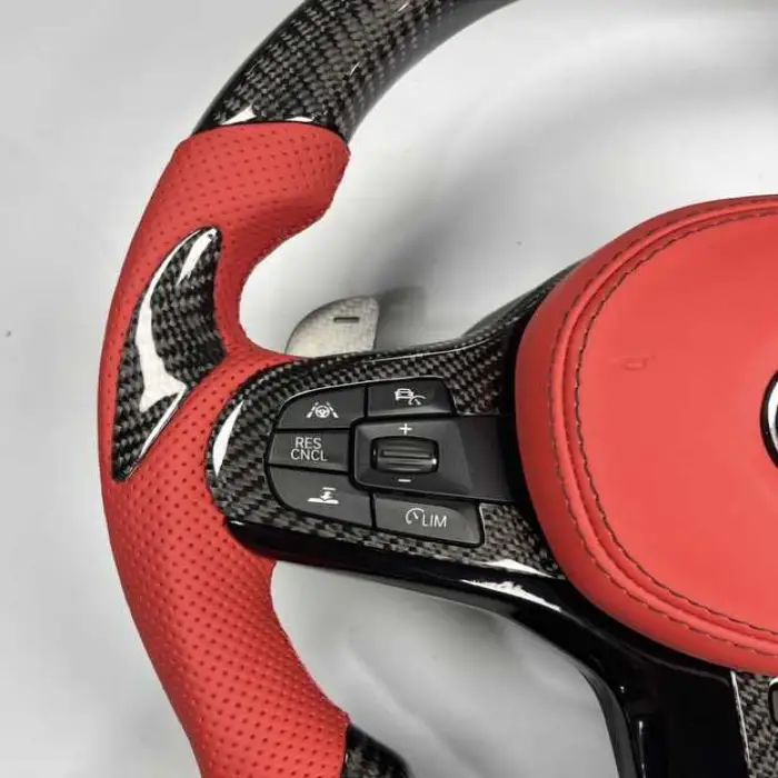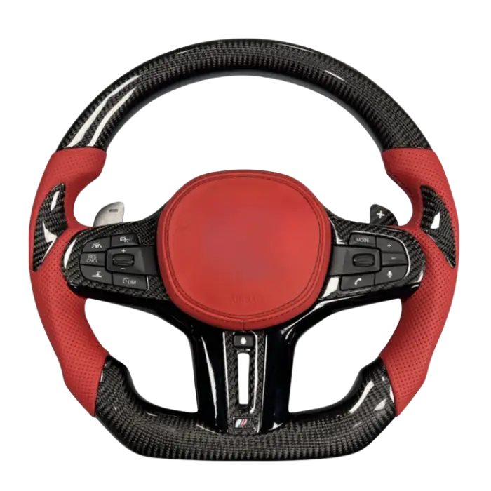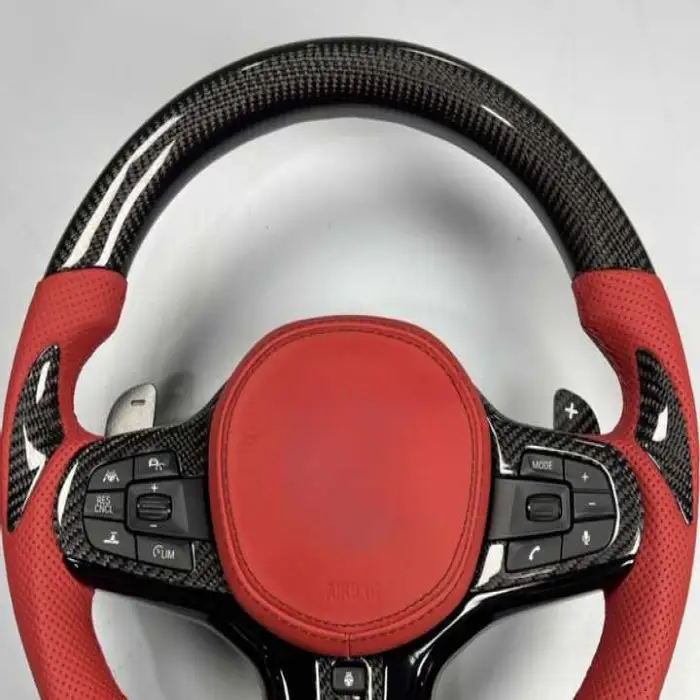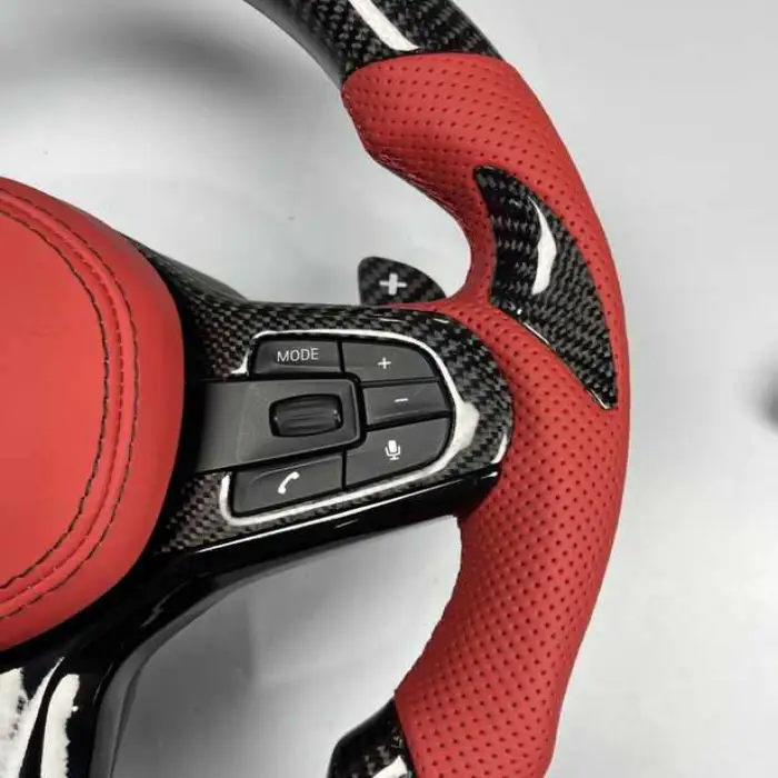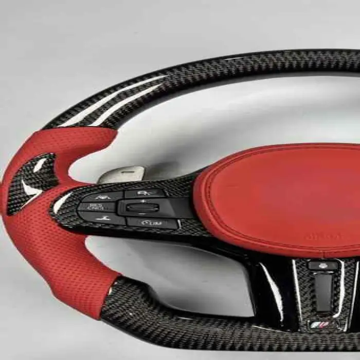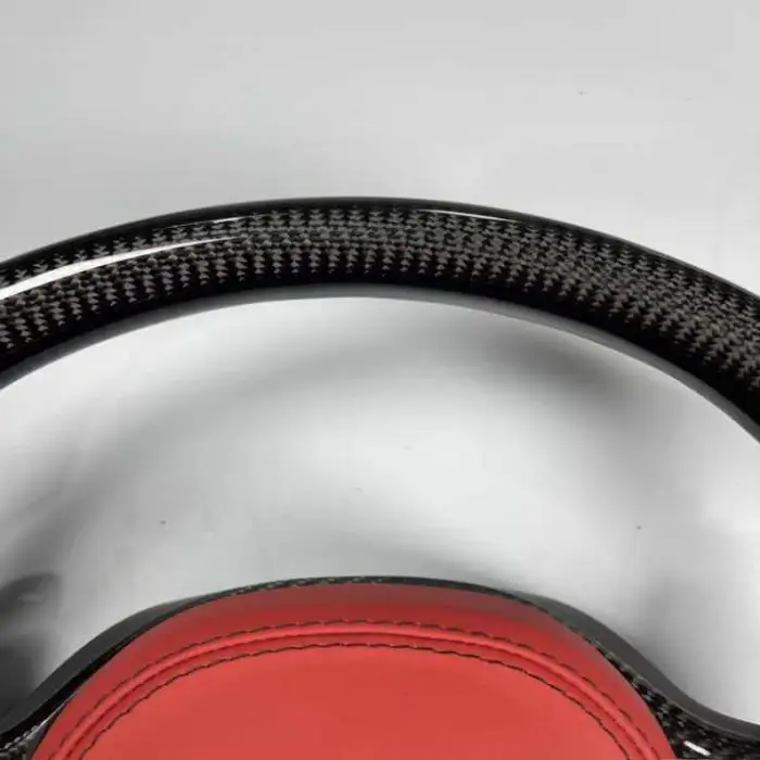 The steering wheel is made from high-quality carbon fiber, which ensures durability and a sporty feel.