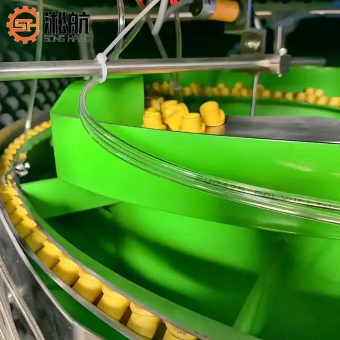 This machine is ideal for industries such as cosmetic product packaging, pharmaceutical cap feeding, and food and beverage cap applications.