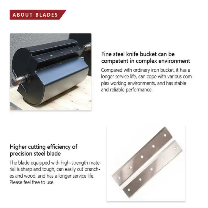 Replacement blades and common spare parts (blades, belts, filters) are typically available. Check with the supplier or manufacturer's parts department to order parts compatible with the 350 mm chipping drum.