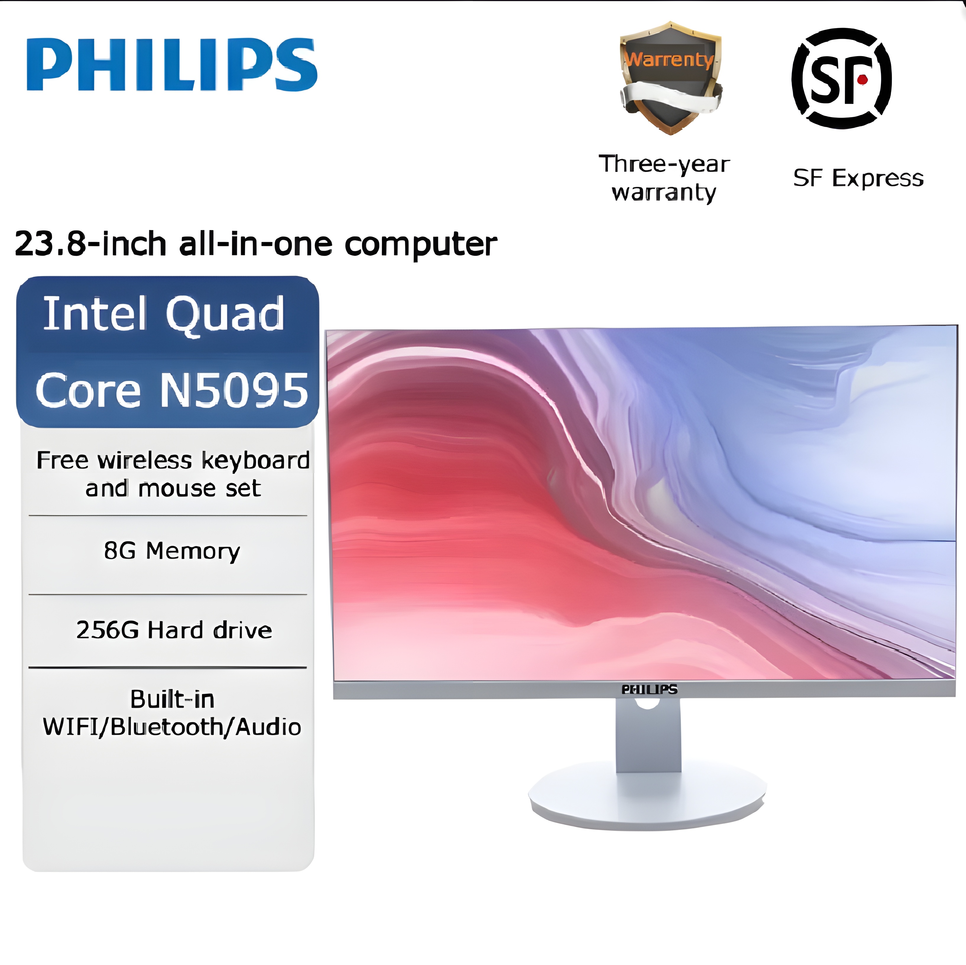 1. What are the key specifications of the Philips 24-Inch HD All-in-One Computer?