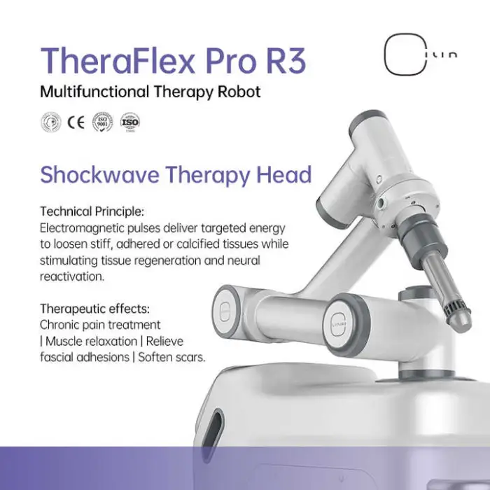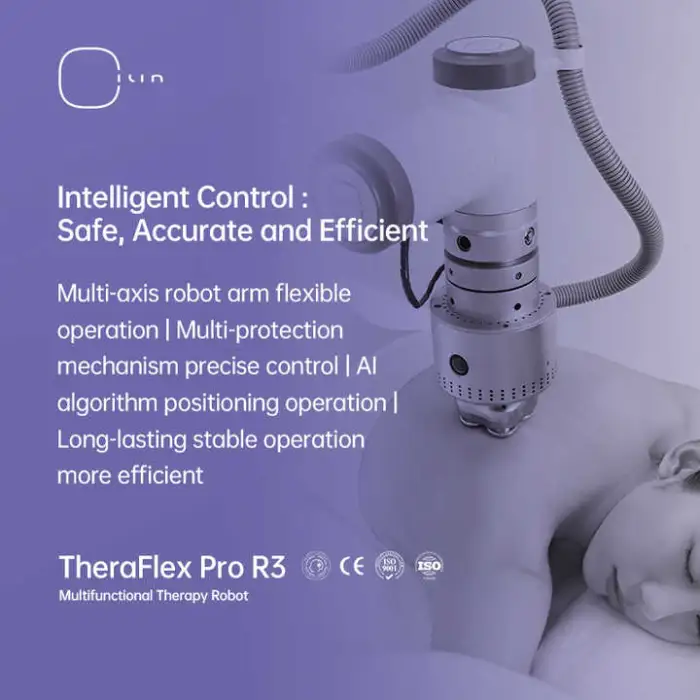The TheraFlex Pro R3 is a multifunctional spa and rehabilitation device that combines RF (250 kHz), shockwave, terahertz and robotic/physical massage technologies to provide physiotherapy, pain relief, body slimming, lymphatic drainage and relaxation treatments for clinics, salons, rehab centers and home wellness use.