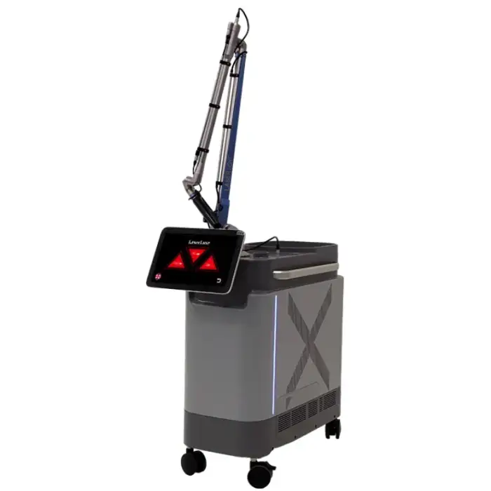 This machine utilizes Picosecond Q-Switched Nd:YAG laser technology, which delivers ultra-short pulses of light for efficient breakdown of pigment particles.