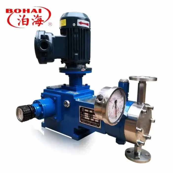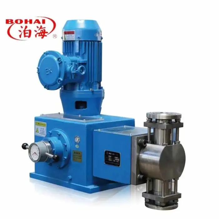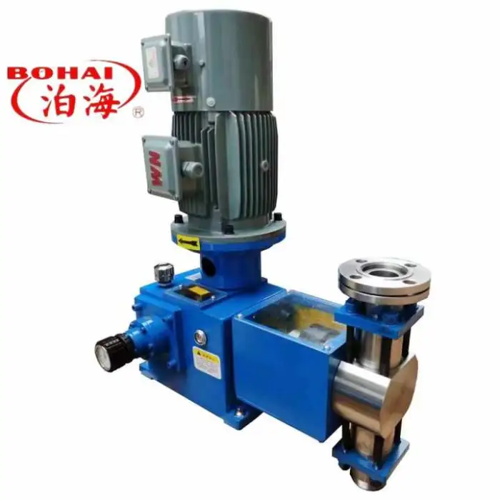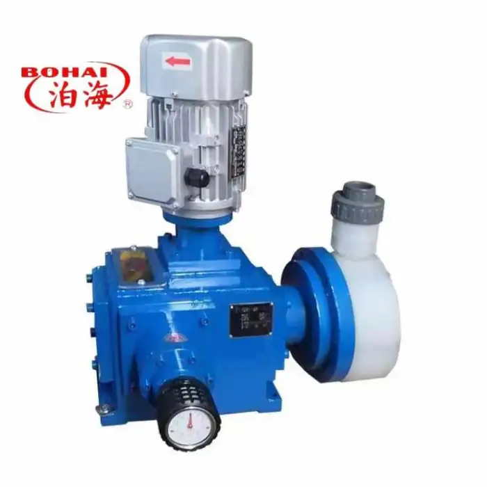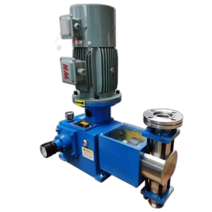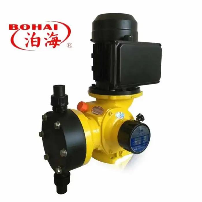 This model is a reciprocating diaphragm metering pump driven by a piston/actuator mechanism. The piston drives a PTFE diaphragm to achieve precise, high-pressure dosing.