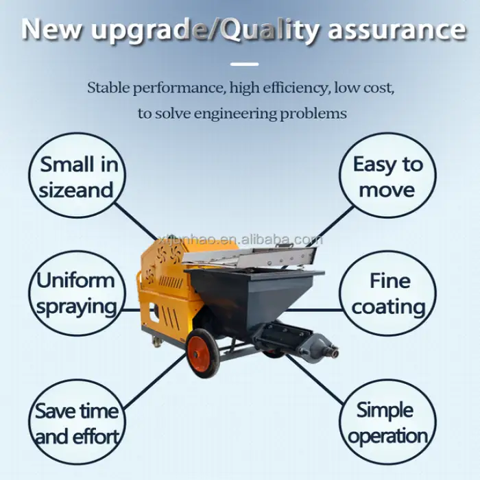 This machine can spray cement, mortar, and putty, making it suitable for a variety of plastering tasks.