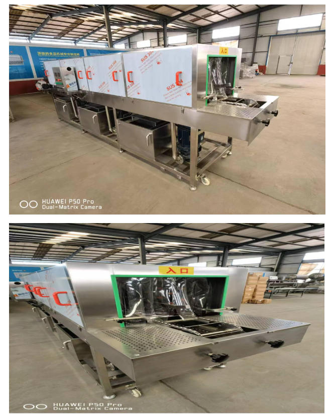 The Plastic Basket Washer Machine (6m) is designed to handle a large volume of plastic baskets, accommodating up to 6 meters of baskets per cycle.