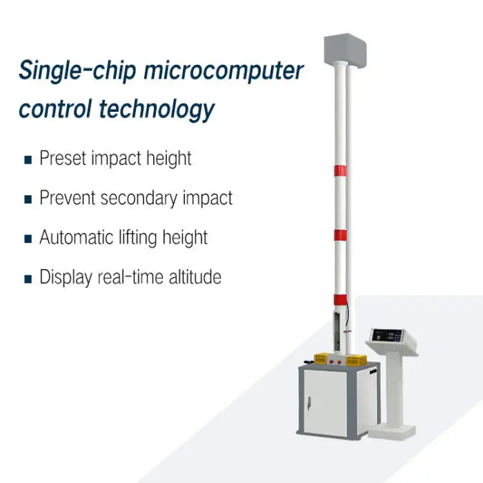 Key features include accurate impact testing, adjustable hammer weights, easy height adjustment, a compact design, and reliable electronic power.
