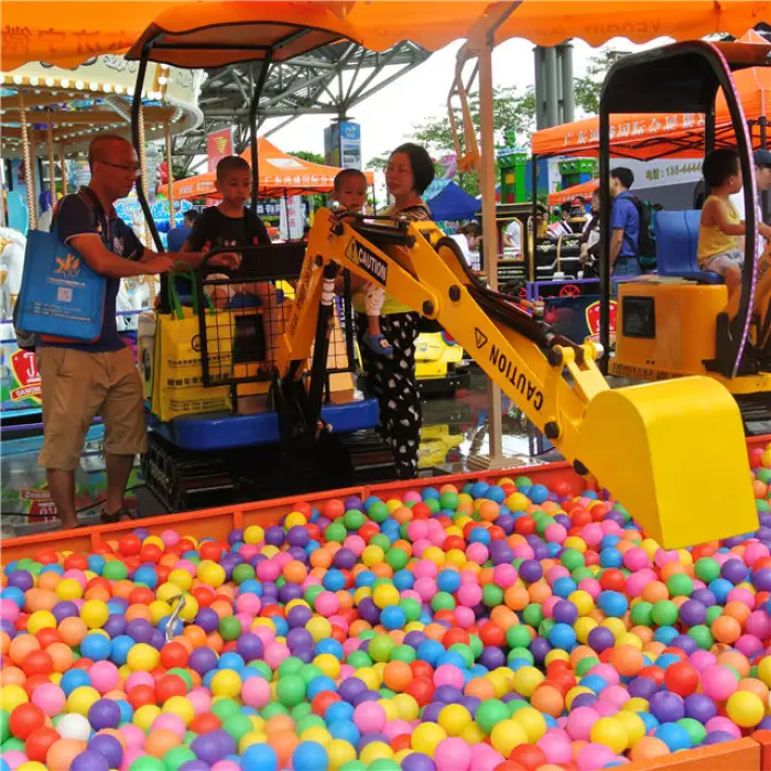 The mini excavator is coin-operated, making it easy for users to start and enjoy the experience.