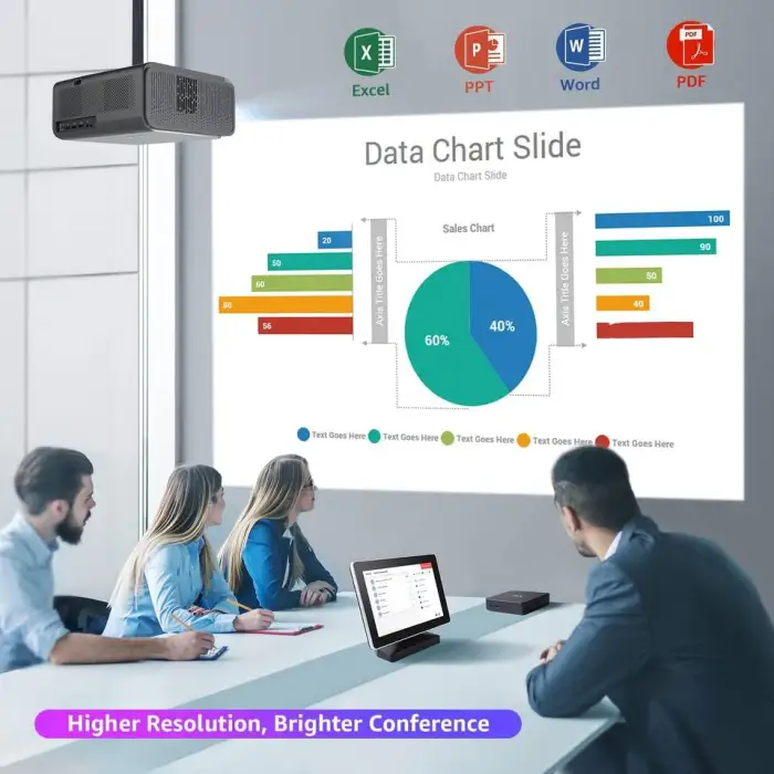 The projector has a brightness level of 650 ANSI Lumens, providing clear images even in moderately lit environments.