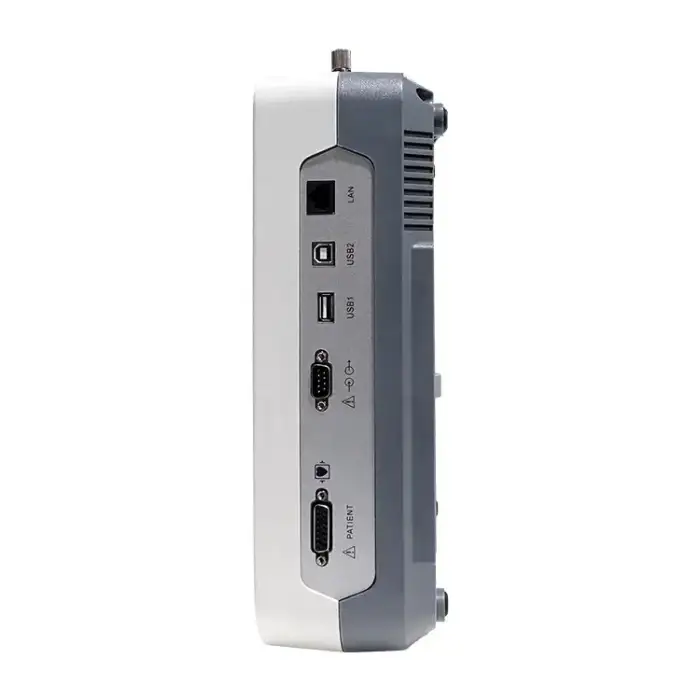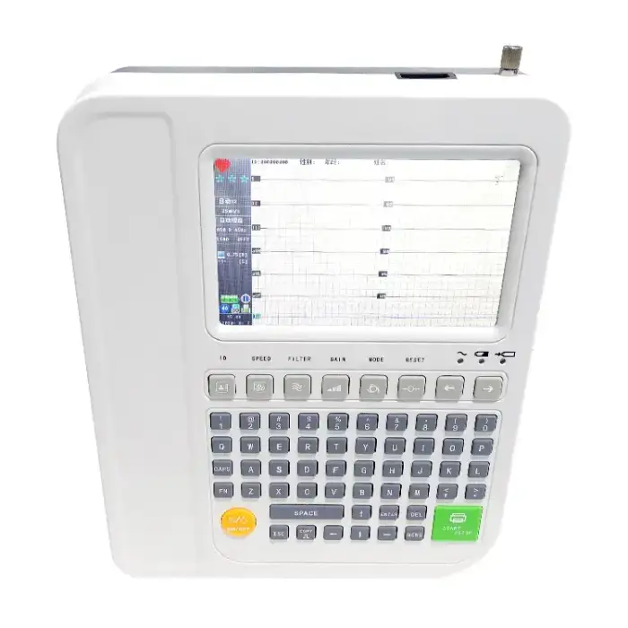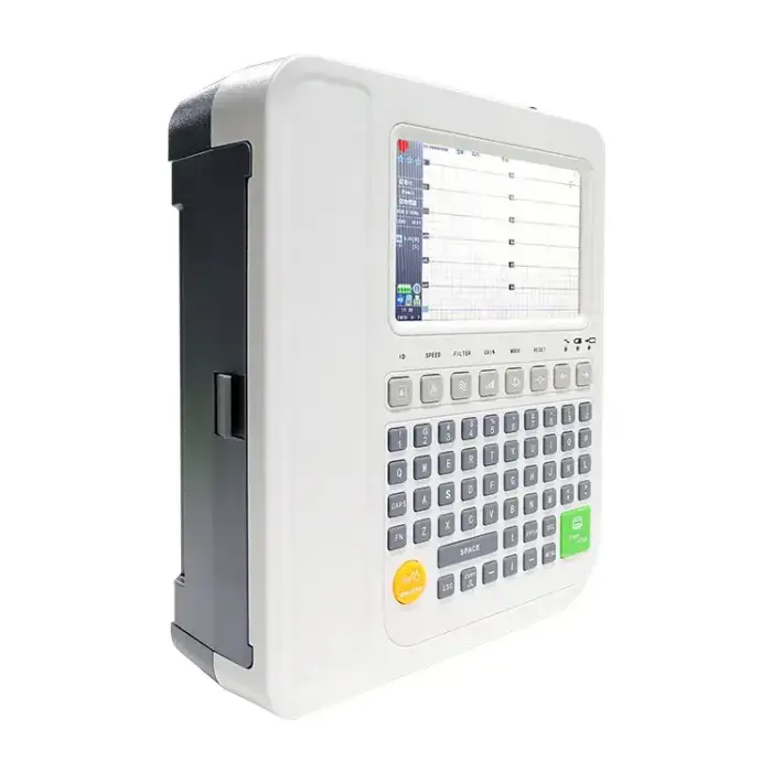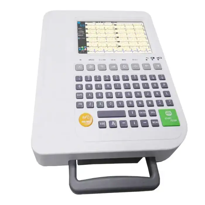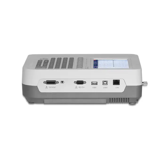 The machine supports waveforms of 3 leads, 6 leads, and 12 leads for varied ECG assessments.