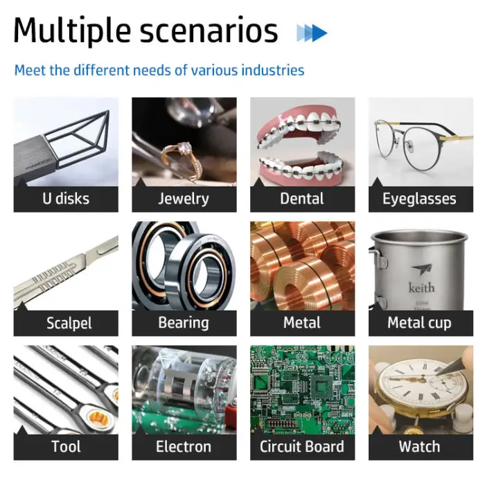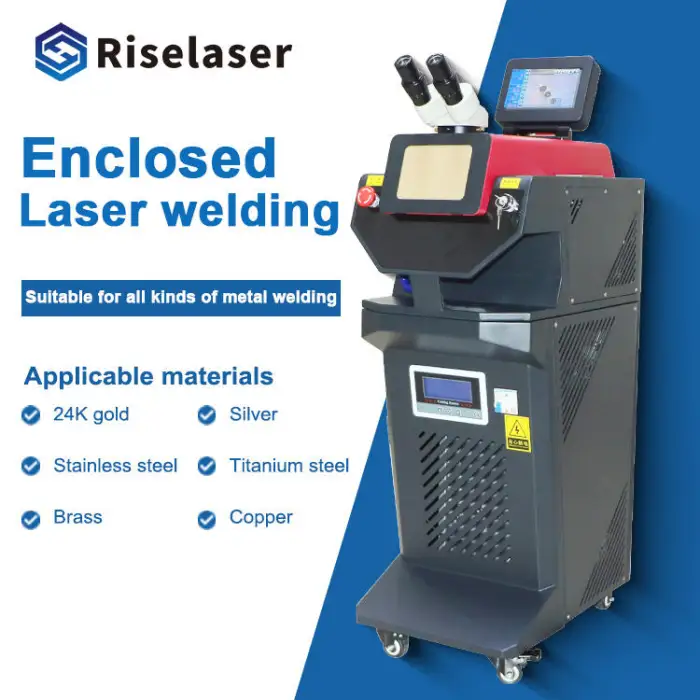 The machine is designed to weld gold, silver, and platinum jewelry, making it ideal for repairing earrings, bracelets, and rings.