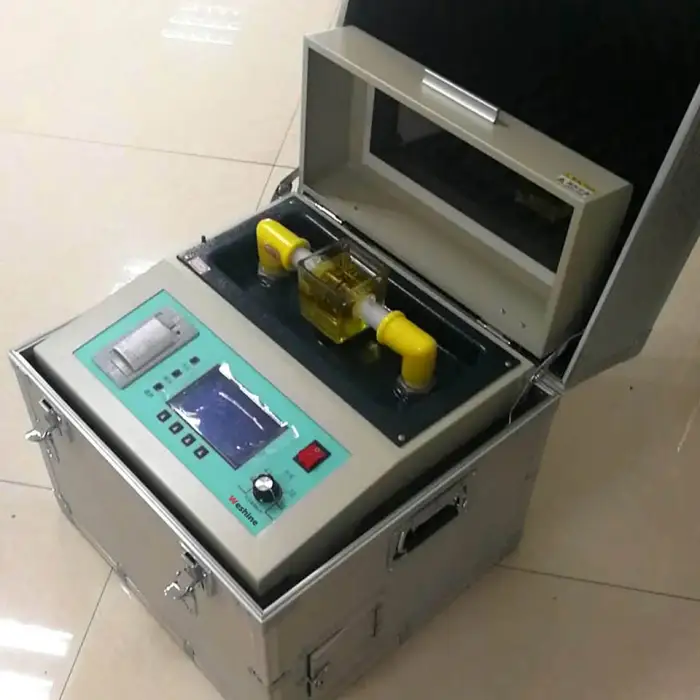 This test set is suitable for testing insulation oils in transformers, ensuring compliance with safety standards, and quality assurance in manufacturing processes.