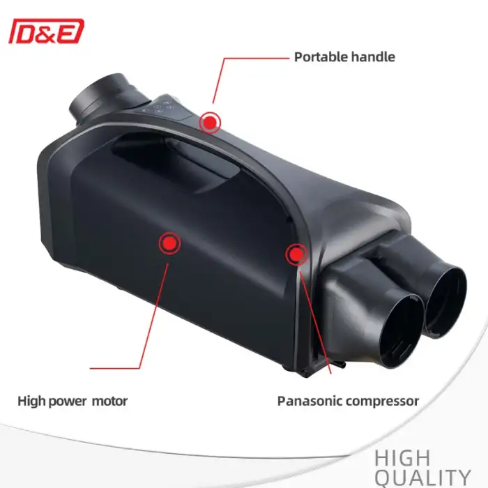 This air conditioner can be powered by both DC24V and 100-240V, allowing it to adapt to various power sources.