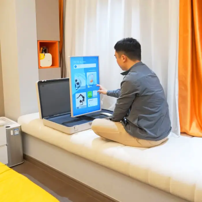 The Portable Briefcase Suitcase Touch Screen PC Monitor runs on Android 12.
