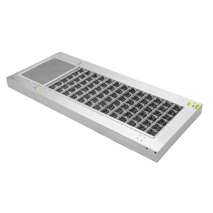 It is equipped with HEPA filters (H13 or H14) that offer 99.99% or 99.995% filtration efficiency for particles as small as 0.3 micrometers.