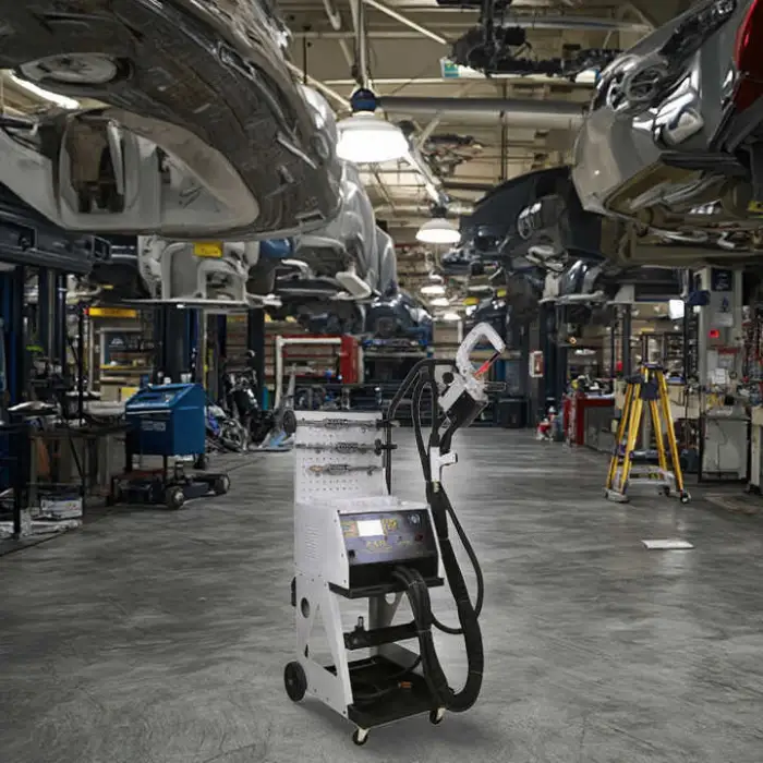 It is ideal for car body repairs, welding metal parts, and can be used in various manufacturing and assembly tasks.
