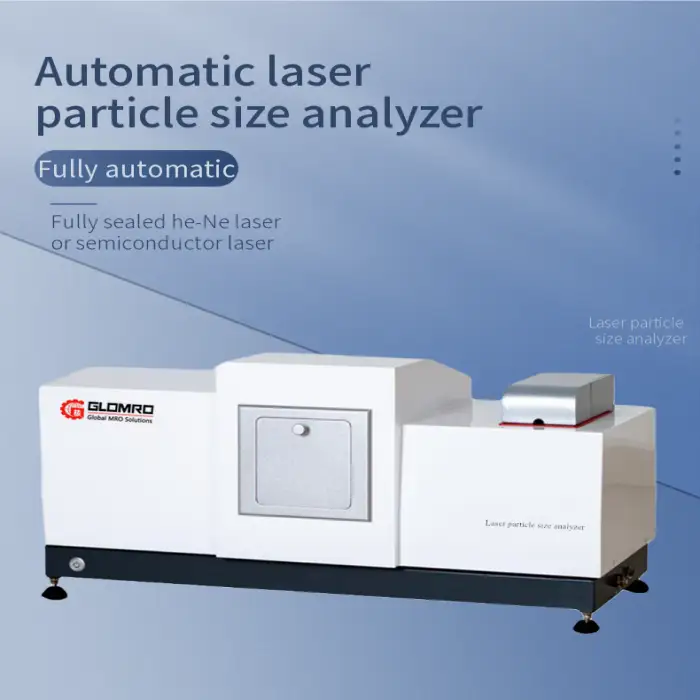 The analyzer utilizes a He-Ne laser gas light source for particle size measurement.