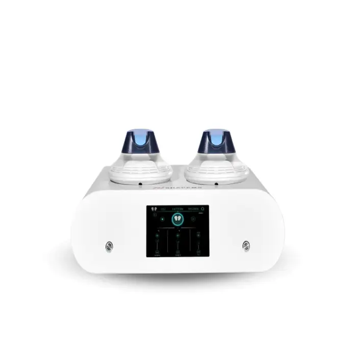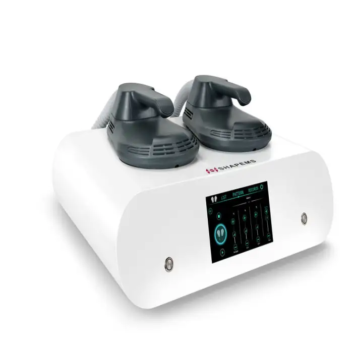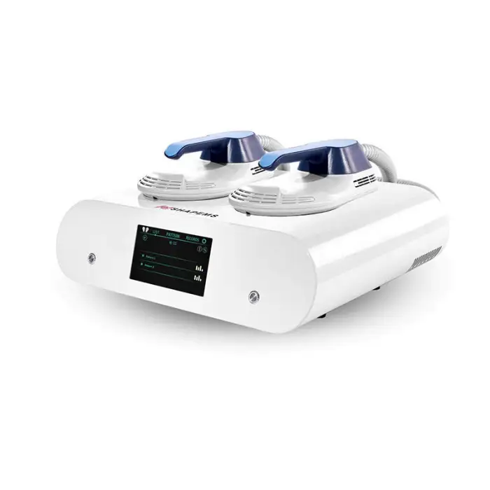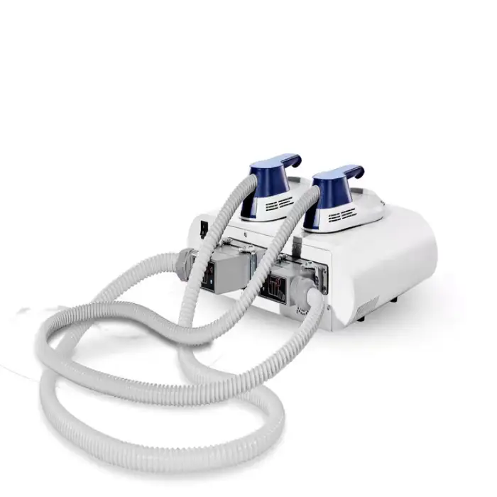 The Portable Ems RF Sculpting Machine includes two handles, allowing for versatile application to different areas of the body.