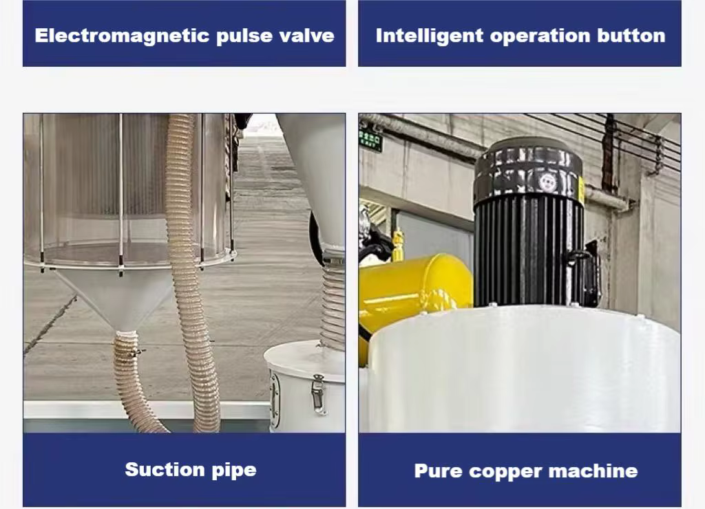 The dust collector features a self-cleaning mechanism, making maintenance easy and efficient.