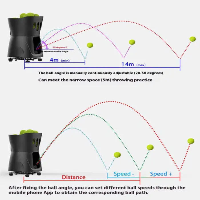 The machine is designed for paddle tennis, pickleball, and general tennis training for trainees of all levels. It’s suitable for practicing serves, returns, accuracy, and footwork.