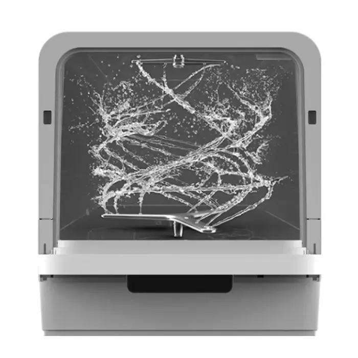 The Portable Table-Top Mini Dishwasher is designed for compact spaces, making it ideal for small kitchens, apartments, and RVs.