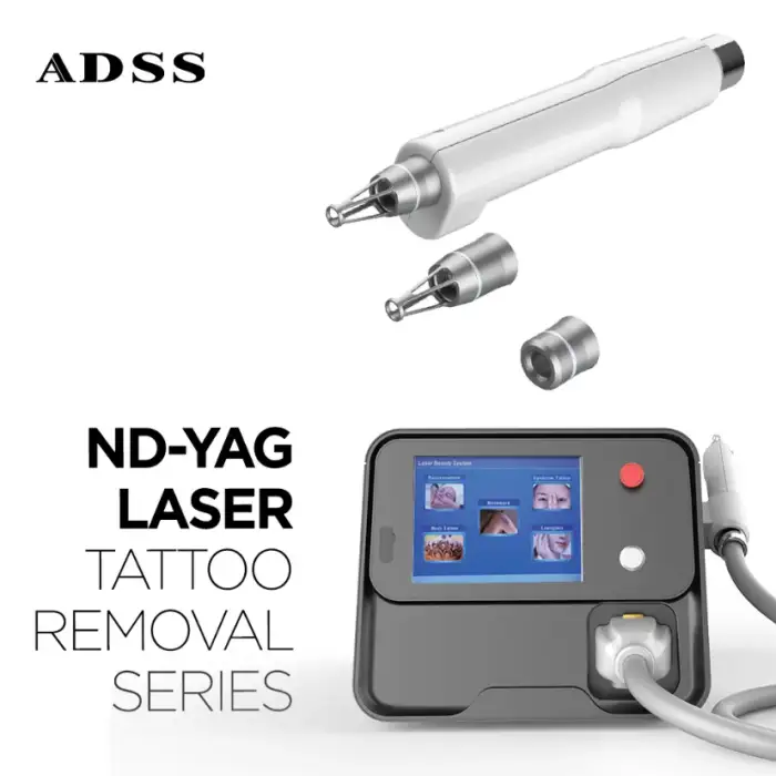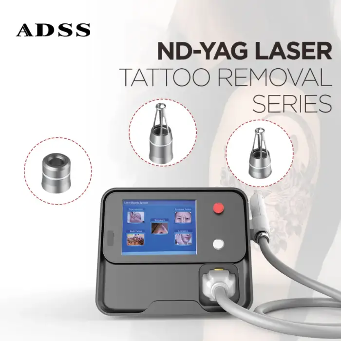 The ADSS Portable Nd: YAG Laser Skin Care Machine is designed to be compact and portable, making it easy to use in various commercial settings like beauty salons and clinics.