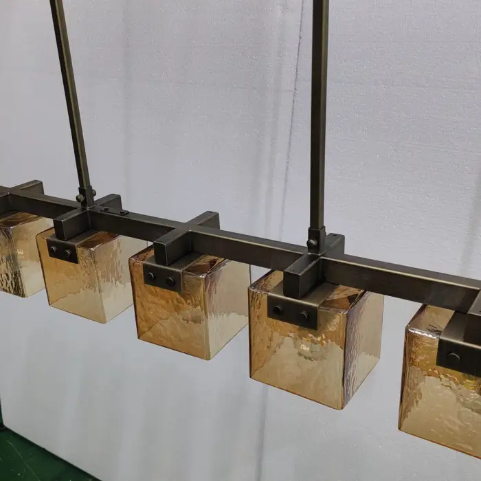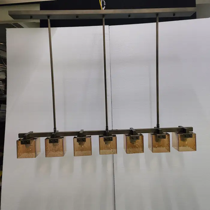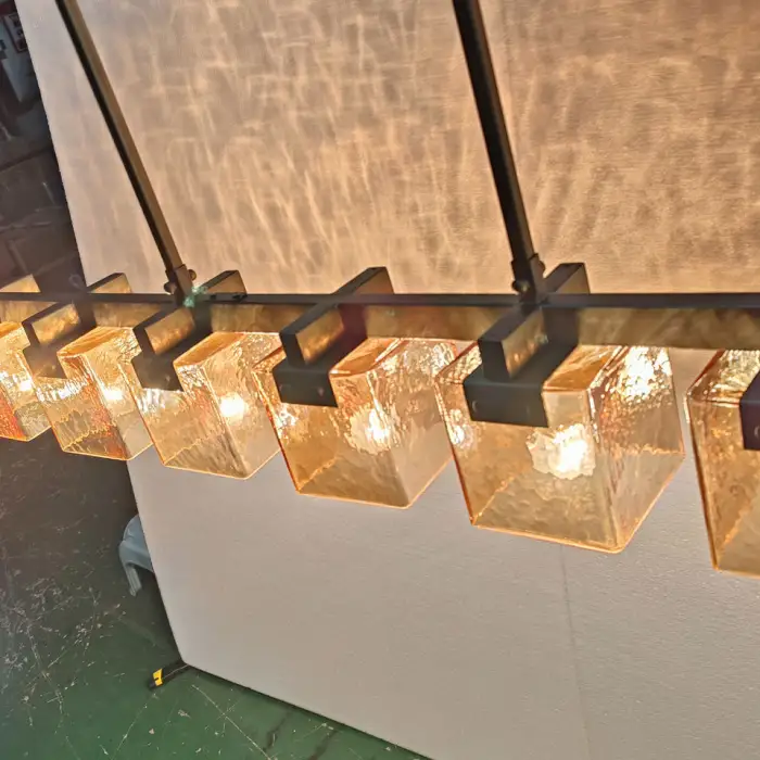 Yes. The chandelier features an adjustable height for versatile installation and placement over counters, islands or tables.