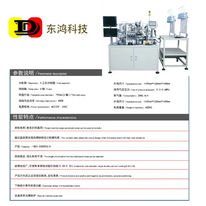 This machine is ideal for manufacturing inductors and transformers, winding electrical components, producing customized shielding assemblies, and efficient tape wrapping.
